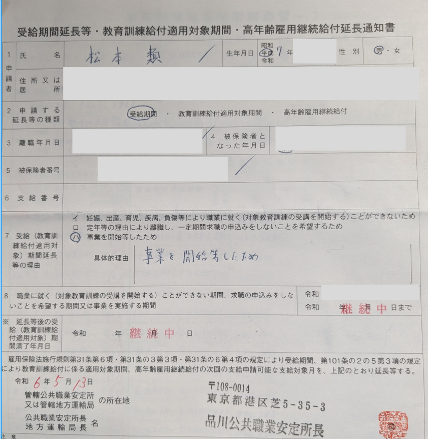 会社を辞めた後に雇用保険の受給期間の延長申請を出す際の手続きについて -